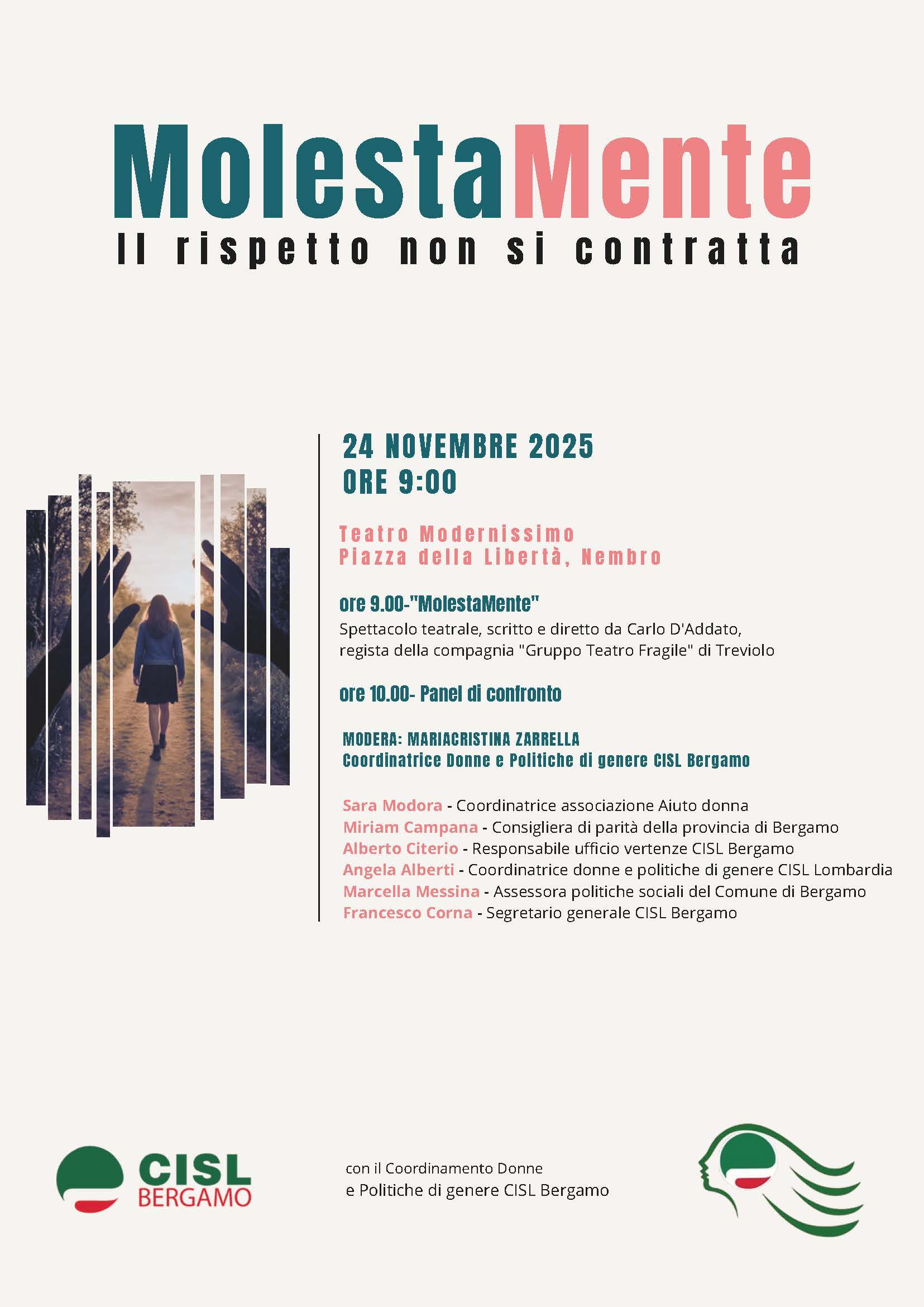 "Molestamente". Si tratta di uno spettacolo teatrale in forma di